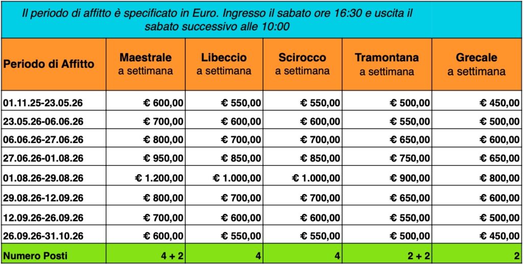 Affitto settimanale Strutture (IVA inclusa)